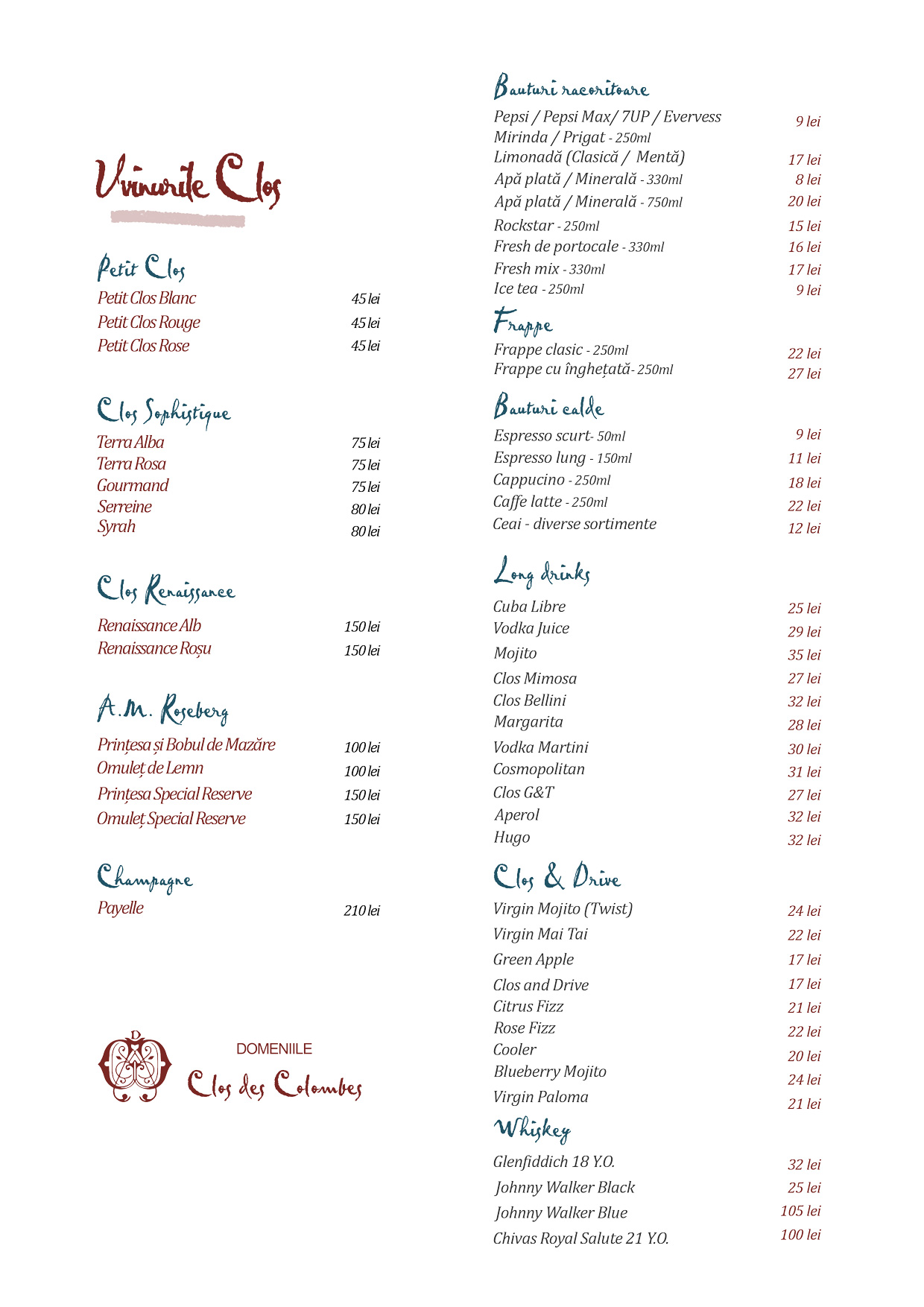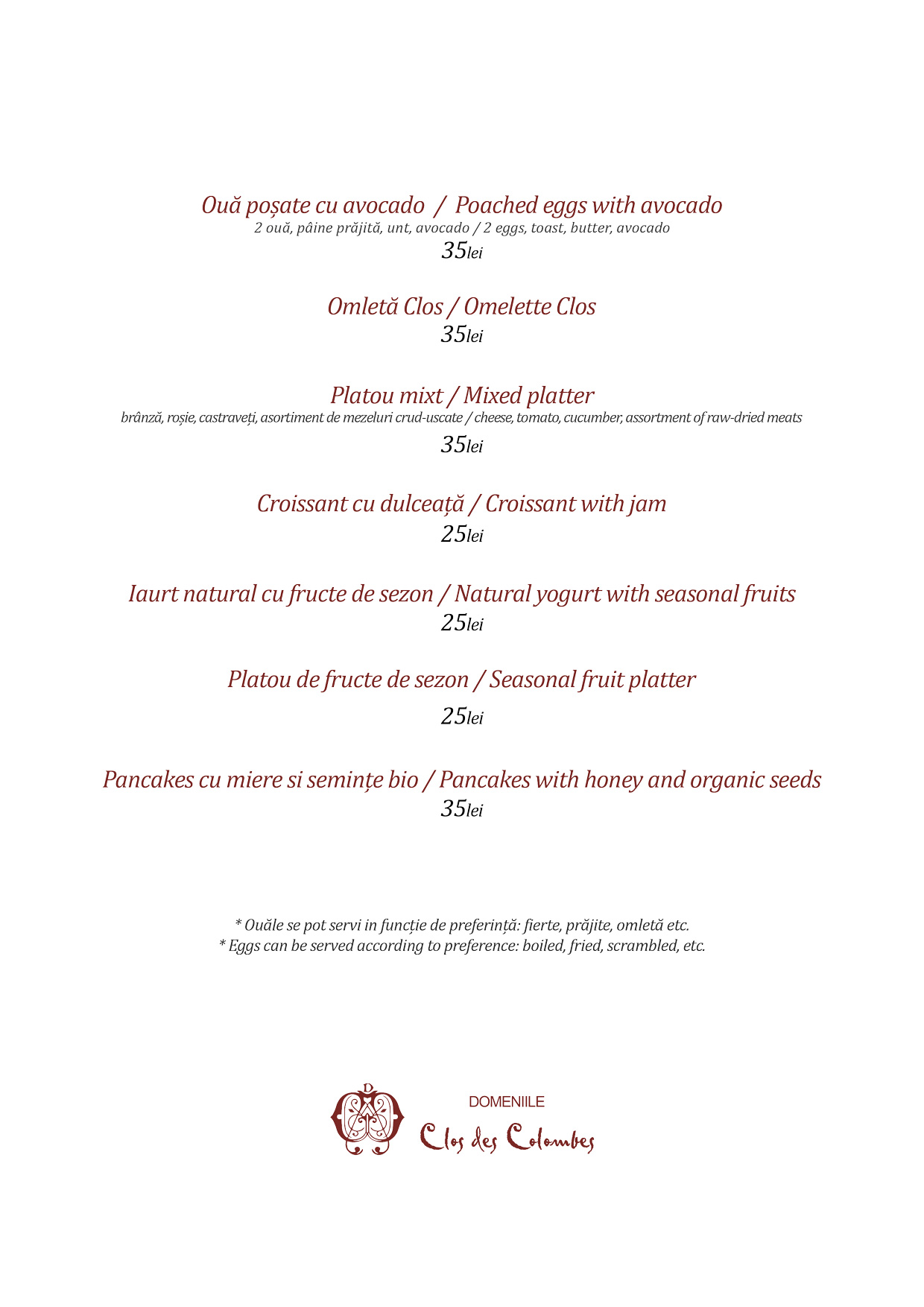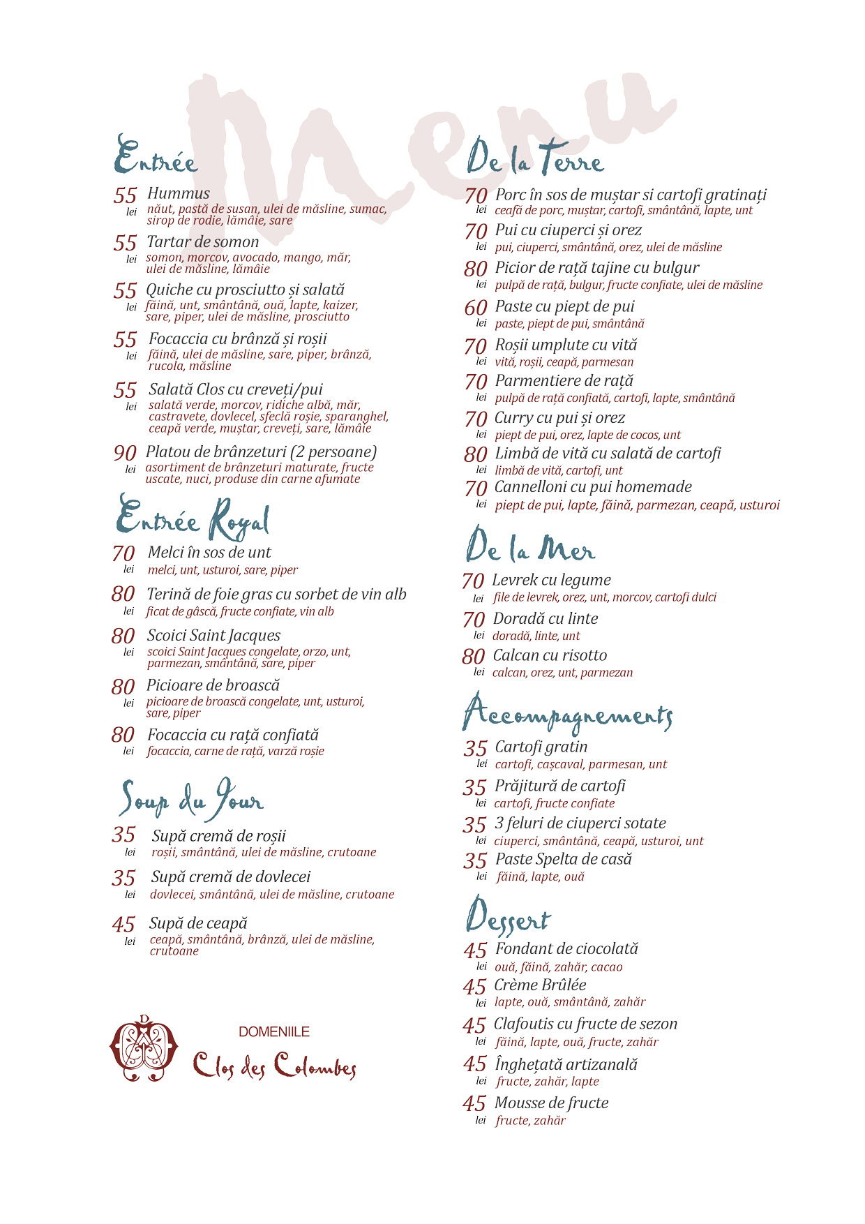 Meniul nostru, à la carte, reflectă rafinamentul și savoarea gastronomiei franceze, o moștenire lăsată de Anne Marie Rosenberg,